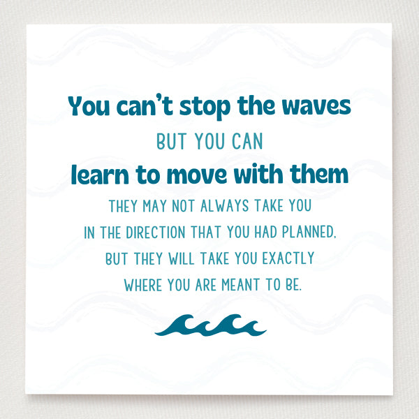 You can't stop the waves, but you can learn to move with them. They may not always take you in the direction that you had planned, but they will take you exactly where you are meant to be.